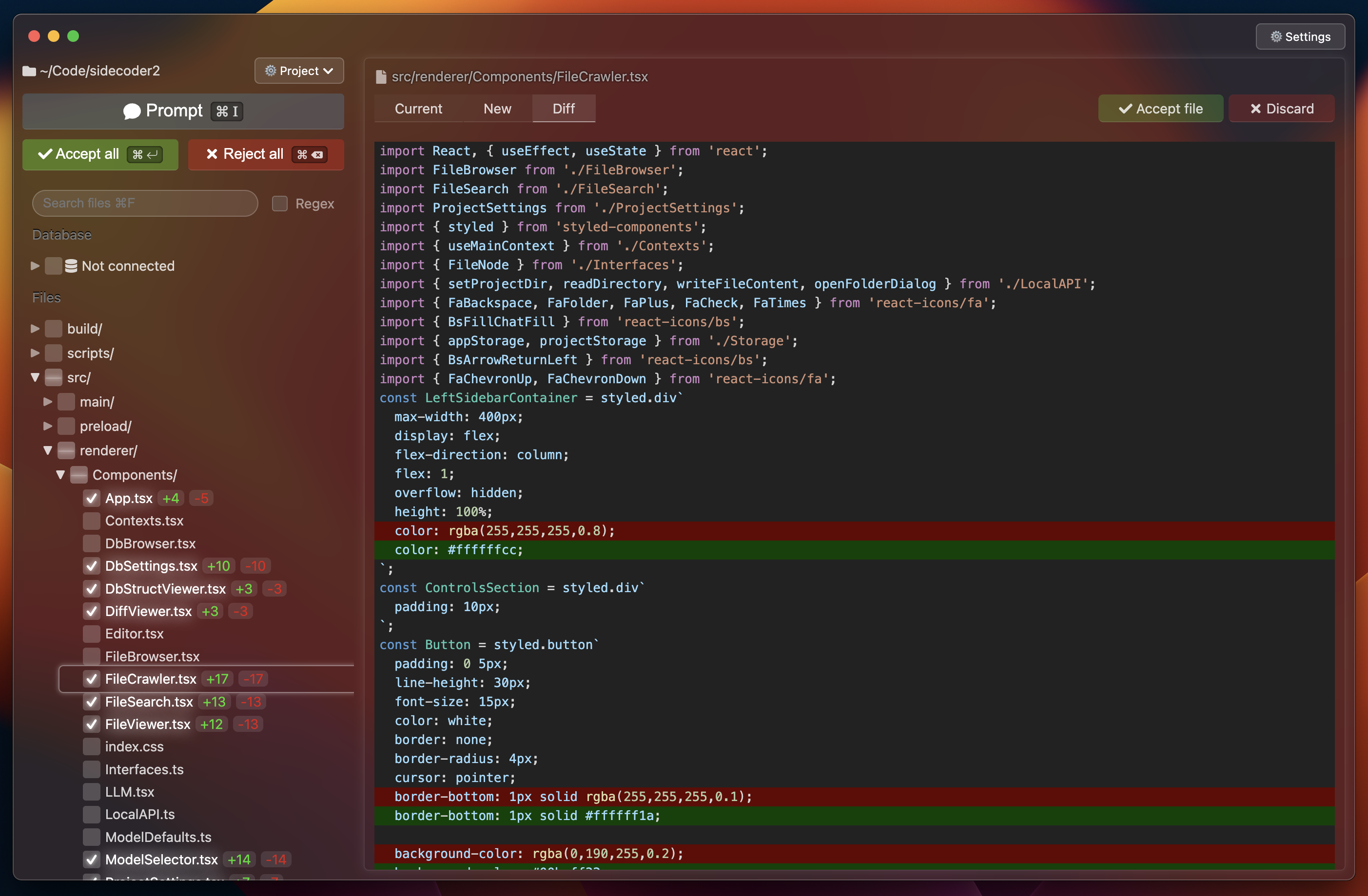 Sidecoder is an AI coding assistant that doesn't replace your editor.